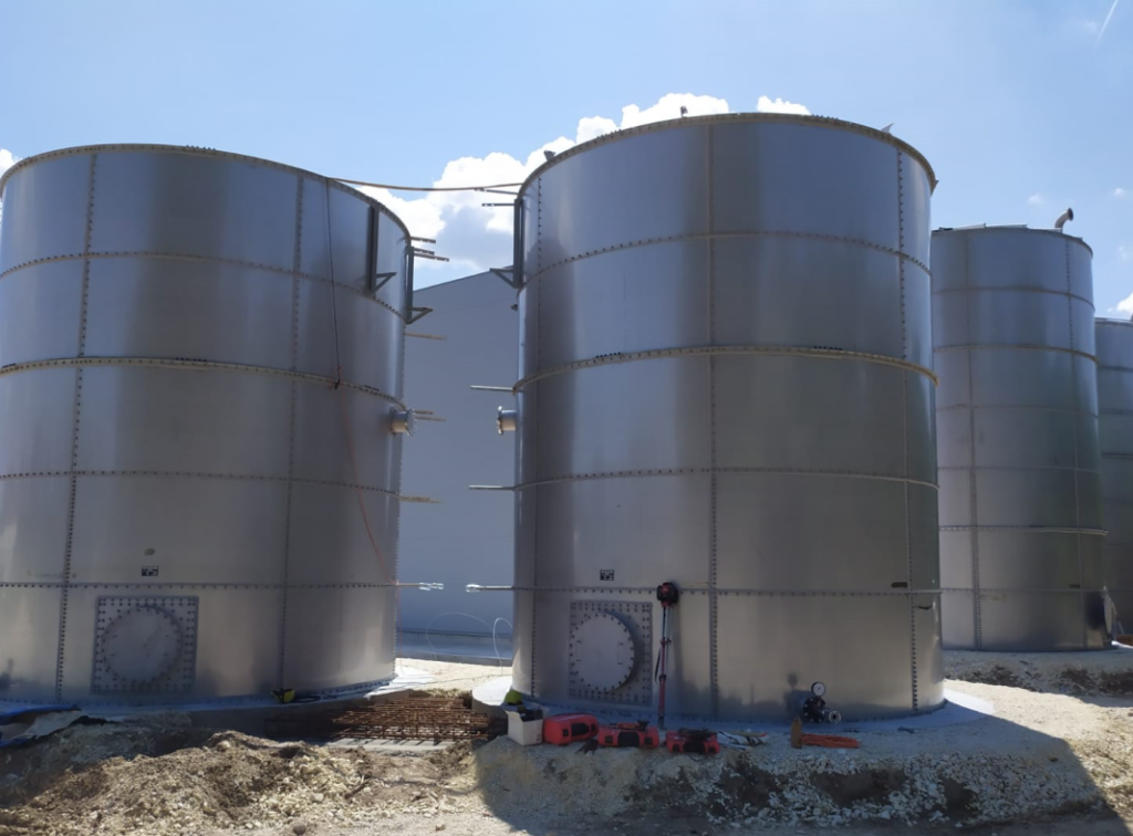 Además de los tanques esmaltados estándar, hemos estado fabricando e instalando tanques atornillados de acero inoxidable, que se utilizan principalmente en plantas de tratamiento de aguas residuales y para el almacenamiento de agua.